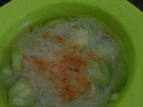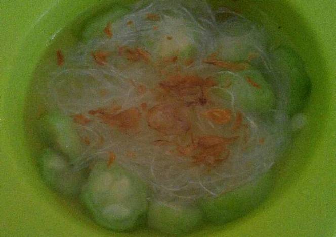 tiriskan soun...dan siram soun dengan kuah sayur oyong yg masih panas...dan tabur dengan bawang goreng...
